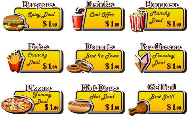 西式快餐标签矢量设计素材